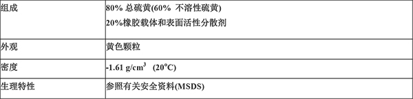 技术特点 预分散IS-80 含有80 % 总的硫黄,其中不溶性硫黄含量60 %(在CS2中不溶物)。预分散IS-80 是所有天然橡胶和二烯烃橡胶硫化剂,与普通硫黄相比,其优异特点是不喷霜和不迁移到其它层当中。因此,预分散IS-80 大量应用于要求不喷霜、多层硫化和要求粘合性能很高的轮胎、运输带、胶鞋等橡胶制品中。
